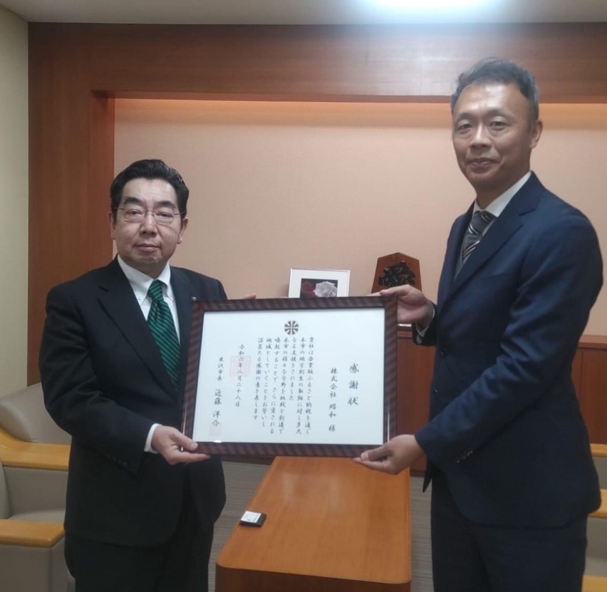 米沢市役にて近藤市長から感謝状を頂きました。